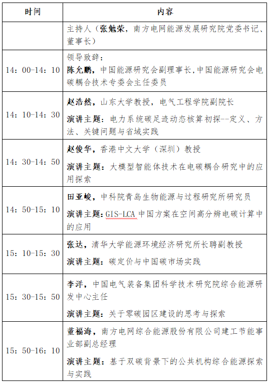 分会场一:电碳耦合技术创新研讨会日程