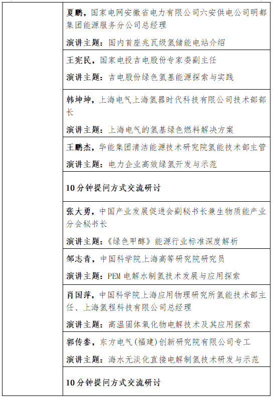 分会场二:氢能产业科技创新研讨会日程