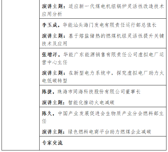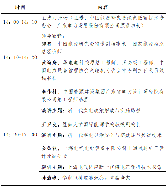 分会场三:新一代火电减碳技术创新研讨会日程