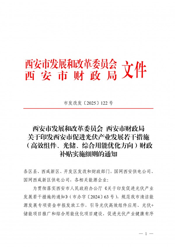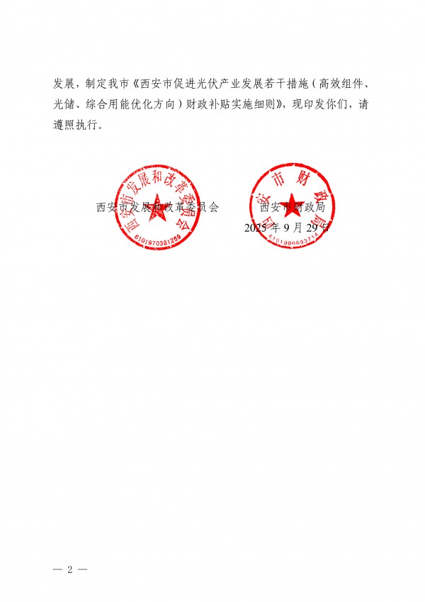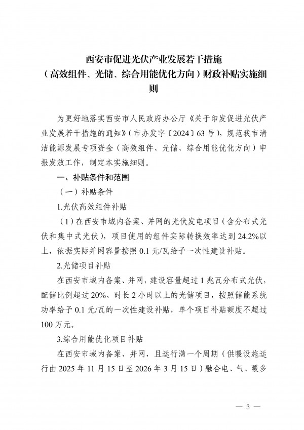 10月21日,西安市发展改革委员会发布《西安市促进光伏产业发展若干措施(高效组件、光储、综合用能优化方向)财政补贴实施细则》。