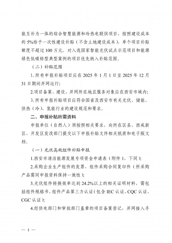 3.所有申报补贴项目应符合国省及西安市有关光伏、储能、供热(冷)、氢能行业的建设规范和要求。