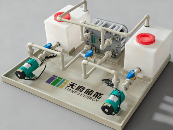 据全球液流电池网获悉,天府储能百瓦级液流电池电堆测试平台,是专为科研机构、高校及企业研发部门打造的专业化测试设备,产品可应用于研发测试、适配性评估与教学实验等应用场景,适用于全钒液流电池、铁铬液流电池、锌铁液流电池、有机液流电池等体系的测试。同时可根据用户的具体需求,定制化设计电极尺寸、单电池片数、流场等参数。