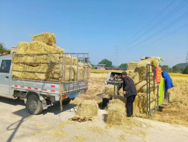 金秋时节,稻浪翻滚的平桂大地处处洋溢着丰收气息。在各乡镇田间地头,一台台秸秆捡拾打捆机往来穿梭,将散落的水稻秸秆整齐打包,一捆捆方块状稻草包如规整的艺术品整齐码放在田间,随后由运输车辆送往收储站或加工企业。这幅繁忙景象,正是平桂区全面推进农作物秸秆综合利用、推动农业绿色发展的生动缩影。