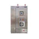 产品采用GGD配电柜柜架,采用主、副盘结构,整柜包括通风系统,检压传感系统,自动控制系统,换气系统,测量系统及电气系统 产品内部可装检测仪表,分析仪表,显示仪表,低压电器,变频器、软启动器或计算机控制系统,可作为中央信号处理系统及中央控制系统 保护装置齐全,控制柜设有换气送点连锁装置,只有达到规定的换气时间后,方能自动送电,并有低压自动报警及自动补气装置,高压自动关气功能 密封性能可靠,壳体采用多重密封防护,保压时间长,节约运行费用 本柜采用电缆沟座安装形式,用户需配备洁净或惰性气体气源 可多台并排安装,联机运行 制造时,用户需提供完整的电气系统图,控制系统内装材料清单