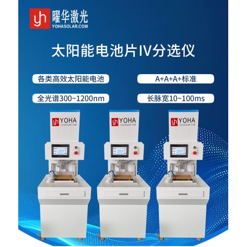 3、IV测试: 设备对电池片施加模拟太阳光(通常通过脉冲光源或稳态光源)并精确测量其在不同电压/电流条件下的响应,生成I-V曲线,从而得到关键参数如开路电压 (Voc)、短路电流 (Isc)、***大功率点 (Pmax)、填充因子 (FF)、转换效率 (η) 等。